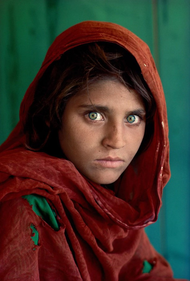 La photographie a été prise en décembre 1984 dans le camp de réfugiés de Nasir Bagh, situé à la frontière entre l'Afghanistan et le Pakistan. À l'époque, Steve McCurry, un photojournaliste expérimenté, documentait le sort des réfugiés fuyant l'occupation soviétique de leur pays. Il se rend dans une tente d'école de fortune et remarque une jeune fille d'environ 12 ans au regard d'une intensité rare. Il n'a que quelques minutes pour la photographier avant qu'elle ne retourne à sa leçon. Le portrait, non titré, est publié des mois plus tard et devient l'une des images les plus reconnaissables de l'histoire. Les yeux de la jeune fille, d'un vert extraordinaire, expriment un mélange de peur, de dignité et de courage inébranlable qui résonne avec des millions de personnes.
